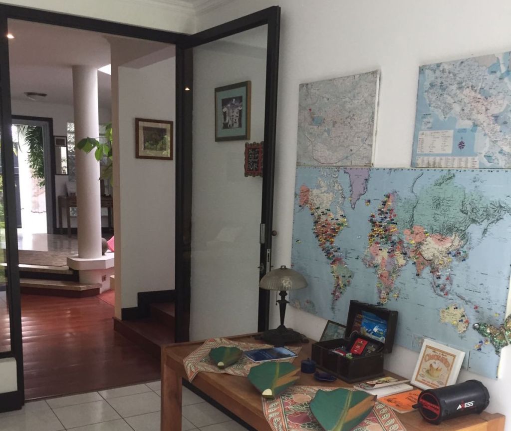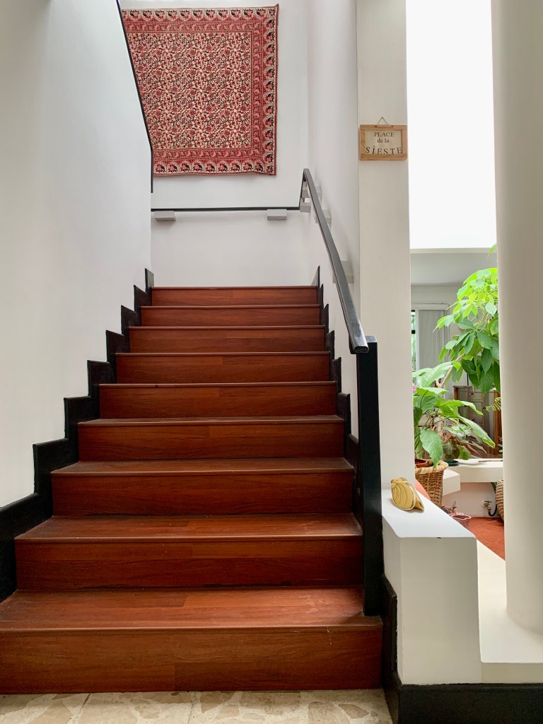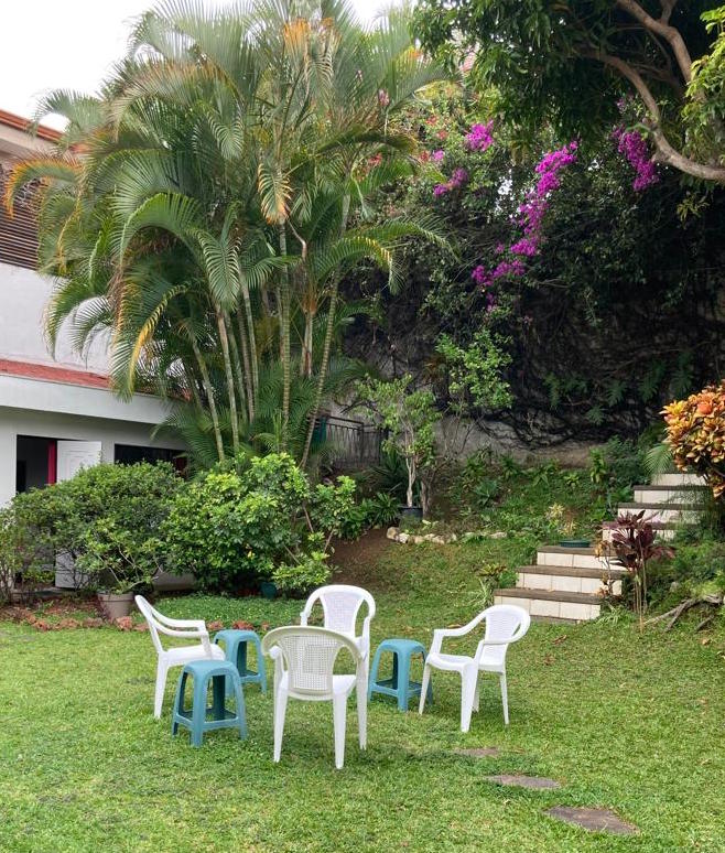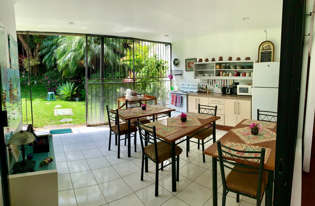 Besides the 4 bedrooms on the upper floor, all the common areas and their amenities are accessible to guests: a fully-equipped kitchen and dining room, that open to a colorful, tree-filled garden, bright living-room with balcony overlooking the park, a multi-lingual library, a desk-top computer, free high-speed wi-fi, a tour & travel desk.